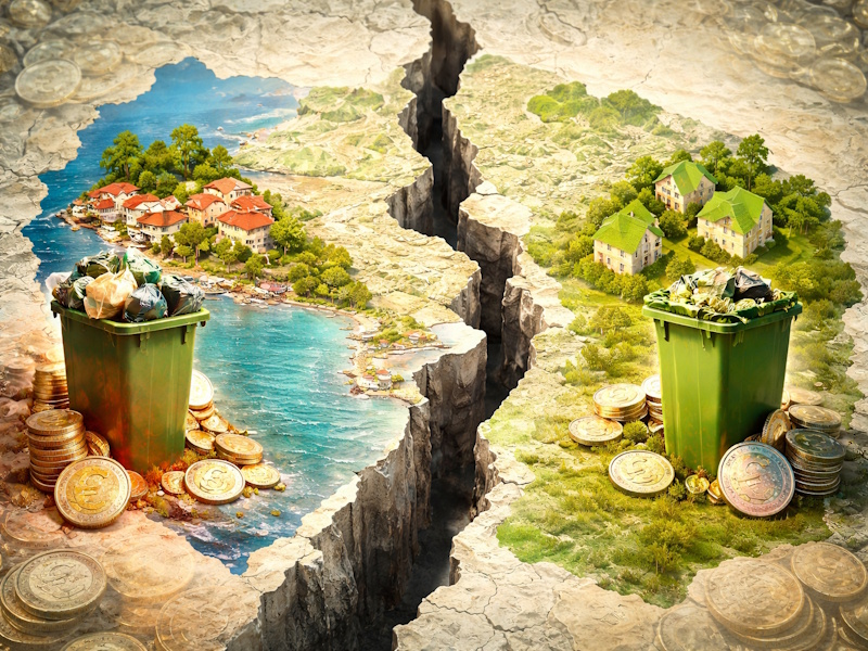 Οι παραθαλάσσιοι και εκτεταμένοι δήμοι με διάσπαρτη δόμηση πληρώνουν περισσότερο την αποκομιδή, ενώ οι πιο συμπαγείς αστικοί δήμοι επιμερίζουν το κόστος σε μεγαλύτερη πυκνότητα κατοίκων.