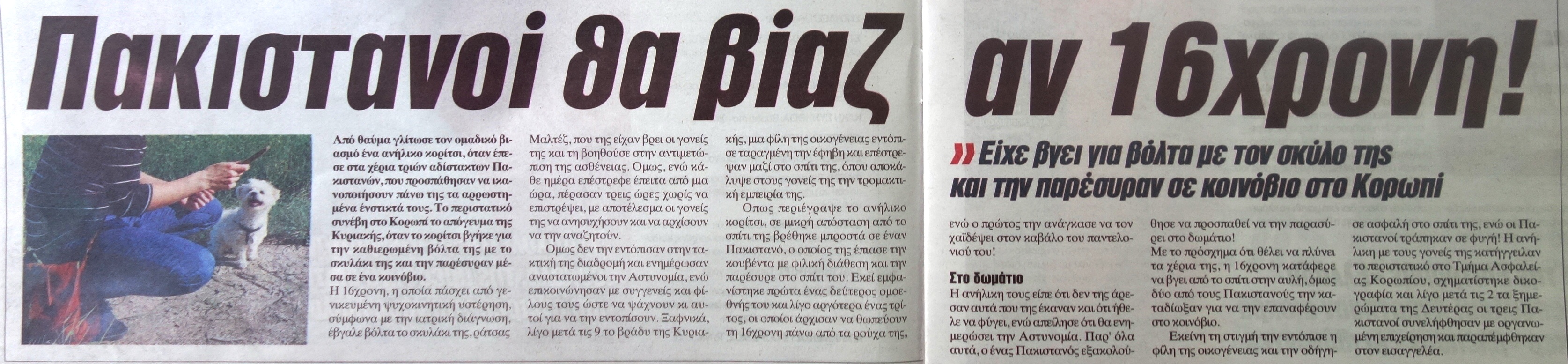 Η κοπέλα είχε βγάλει βόλτα το σκυλάκι της όταν την πλησίασε ένας Πακιστανός και μιλώντας την όμορφα την έπεισε να τον ακολουθήσει στο σπίτι του.