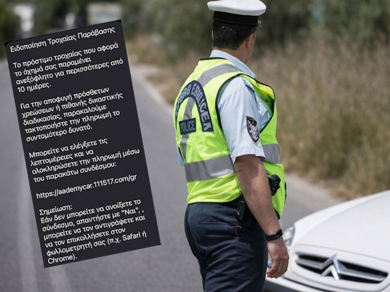 Στα μηνύματα αυτά αναφέρεται ότι ο πολίτης έχει δήθεν λάβει κλήση από την Τροχαία και καλείται να πληρώσει το πρόστιμο μέσω ενός ηλεκτρονικού συνδέσμου (link).